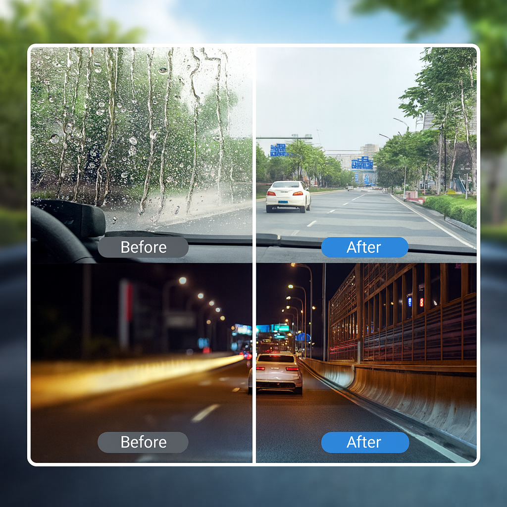Clear glass isn’t just about aesthetics—it’s about safety.After application, water beads instantly and slides off at speed, reducing the need for wipers and helping you stay focused on the road.